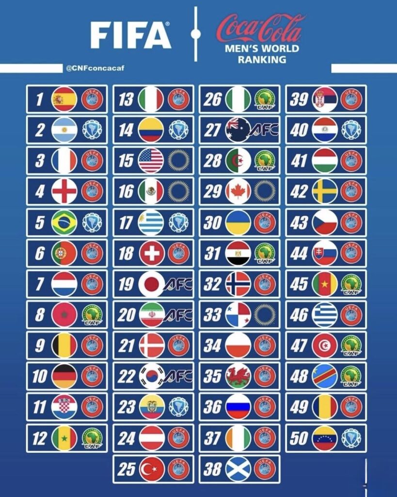 تصنيف الفيفا لأفضل 50 منتخب في العالم لشهر يناير ..