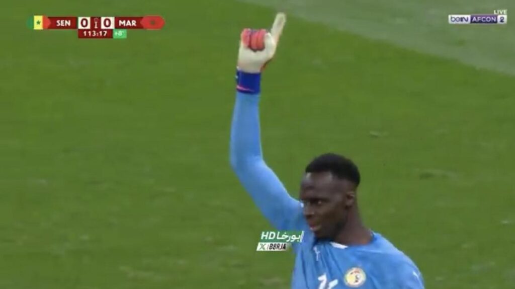 ميندي يشير للسماء بعد تصديه لركلة الجزاء امام ابراهيم دياز ..