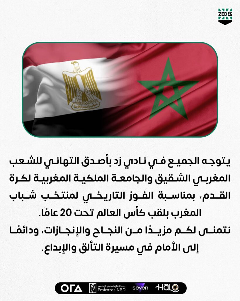 نادى زد >>> خالص التهاني للأشقاء في المغرب على هذا الإنجاز العظيم. شرفتم الكرة العربية